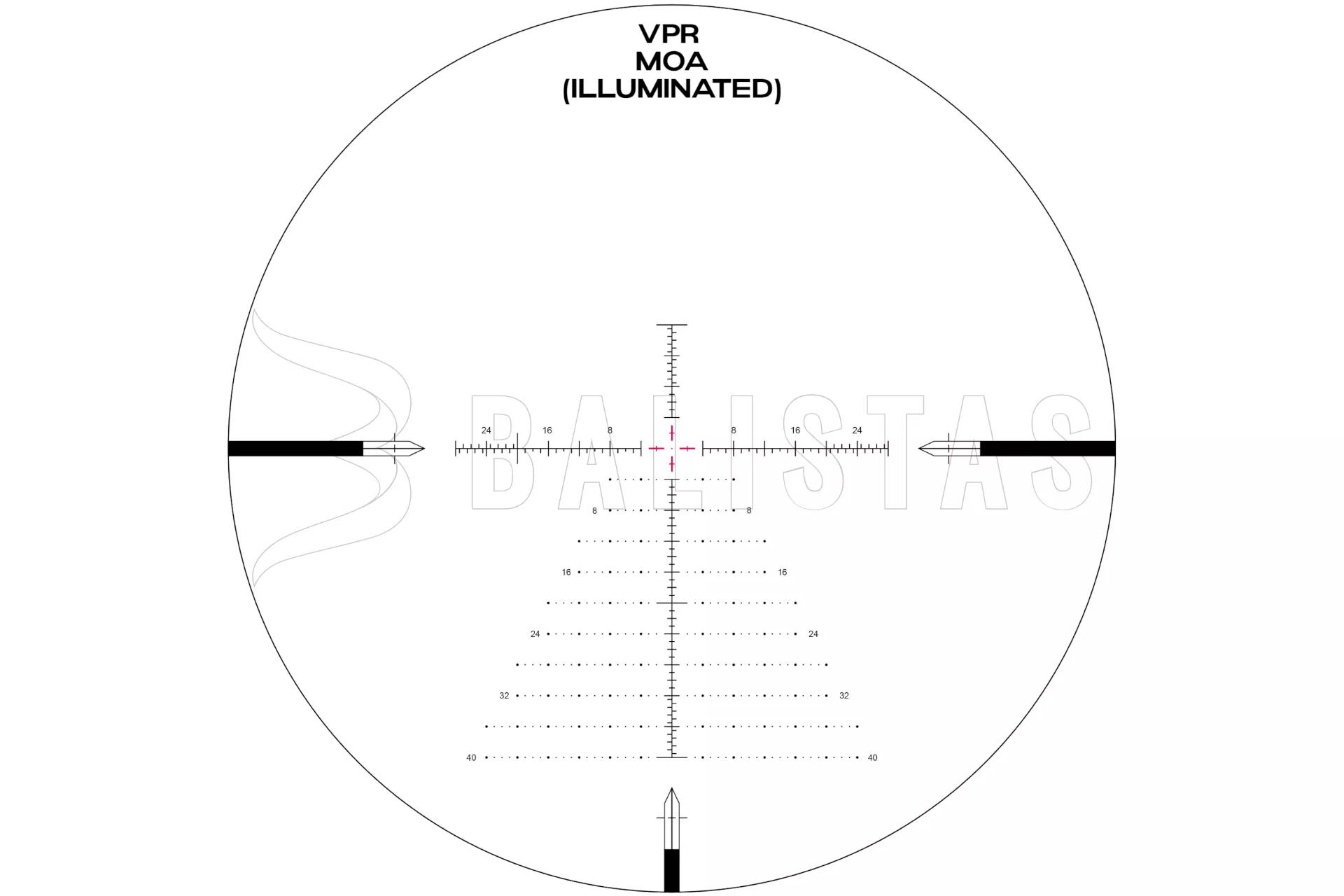 Das VPR-Absehen befindet sich in der ersten Brennebene und das bedeutet, dass die Vergrößerung die Größe des Absehens verändert. Es ist auch beleuchtet und Sie können aus 6 verschiedenen Helligkeitsstufen wählen. Dieses Modell wird mit einer CR2032-Batterie betrieben (nicht im Lieferumfang enthalten).