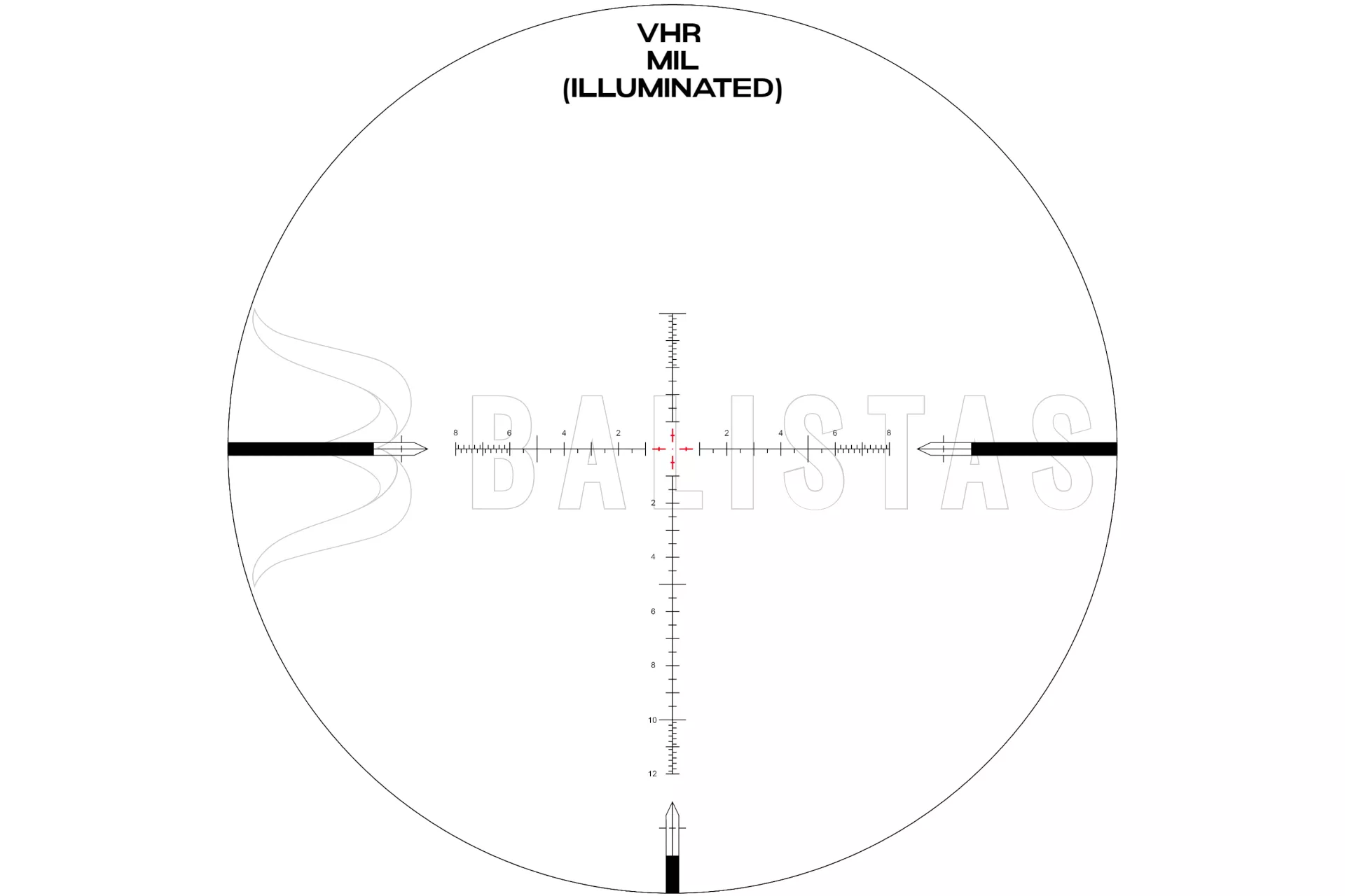 Das VHR-Absehen befindet sich in der ersten Brennebene und das bedeutet, dass die Vergrößerung die Größe des Absehens verändert. Es ist auch beleuchtet und Sie können aus 6 verschiedenen Helligkeitsstufen wählen. Dieses Modell wird mit einer CR2032-Batterie betrieben (nicht im Lieferumfang enthalten).