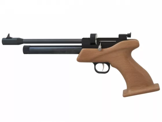 Luftpistole für Bleikugeln des Kalibers 4,5 mm. Die Pistole ist für das Scheibenschießen bestimmt und wird mit CO2-Katriden betrieben. Doppelmagazine sorgen für 16 Schuss.