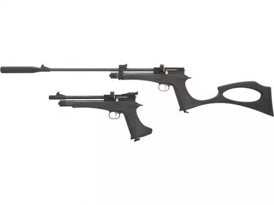 Neuheit vom Hersteller SPA. Die Luftpistole kann in ein klassisches langes Luftgewehr umgebaut werden. Schalldämpfer, verlängerter Lauf und Schaft sind in der Verpackung enthalten. Dieses Modell wird sicher ein Bestseller.