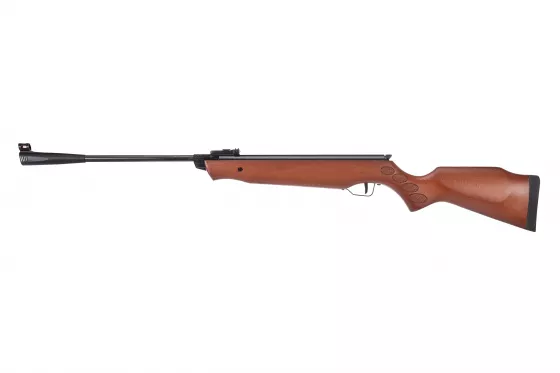 Das klassische Kral Arms N-03 Federdruckgewehr hat alles, was Sie für das Freizeitschießen brauchen – Polymerschaft mit symmetrischer Backe, Lichtleitervisier und 450 mm gezogener Lauf.