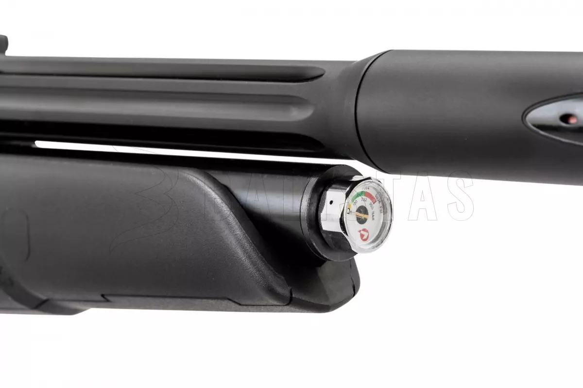 Eine 125 cc Luftkartusche befindet sich unter dem Lauf und ein Manometer ist am vorderen Ende zu finden. Der maximale Fülldruck beträgt 232 Bar. Das Quick-Fill Ventil befindet sich an der Unterseite des Unterarms. Zum Befüllen muss eine Schnellkupplung erworben werden.
