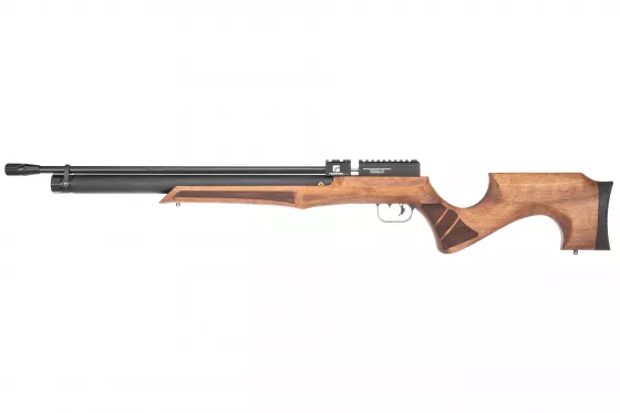 Das Lyra ist ein modernes mehrschüssiges PCP-Luftgewehr, das sich durch einen doppelseitigen ergonomischen Nussbaumschaft mit Pistolengriff und gerillter Oberfläche an den Griffpunkten auszeichnet.