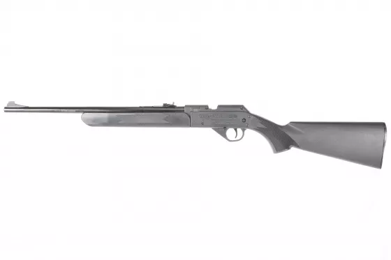 Klassische Knicklauf-Federdruckluf­tgewehr mit 450 mm Lauf, eingebettet in einen schwarzen Polymer-Schaft mit Pistolengriff und weichem Gummischaftkappen.