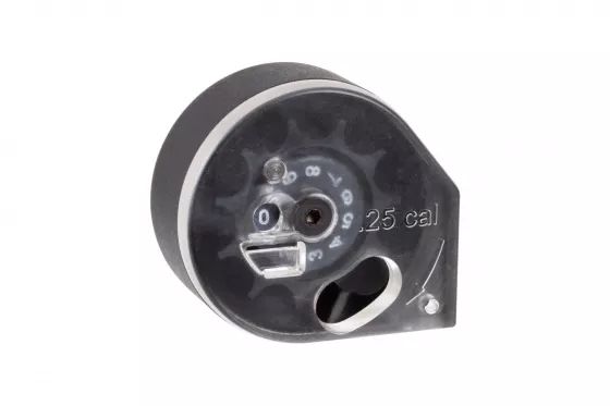 Das Ersatzmagazin für das AirMaks Katran/Krait PCP Luftgewehr. Es hat eine Kapazität von vierzehn Kaliber .25 Kugeln (6,35 mm).
