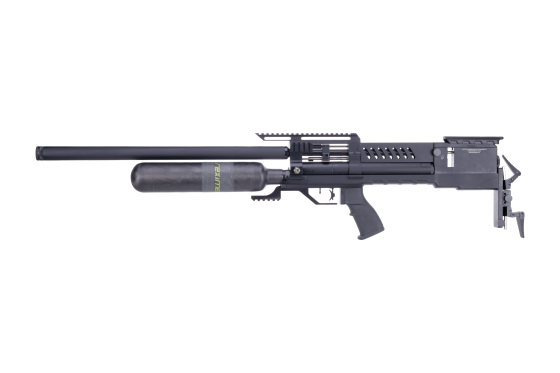 PCP-Pistole mit der Möglichkeit der Umwandlung in ein Karabiner in wenigen Sekunden. Sie zeichnet sich durch eine Polymerkonstruk­tion, 3 klappbare Visierungen, einen ergonomisch geformten Griff und einen abnehmbaren Schaft mit höhenverstellbarer Wange aus.