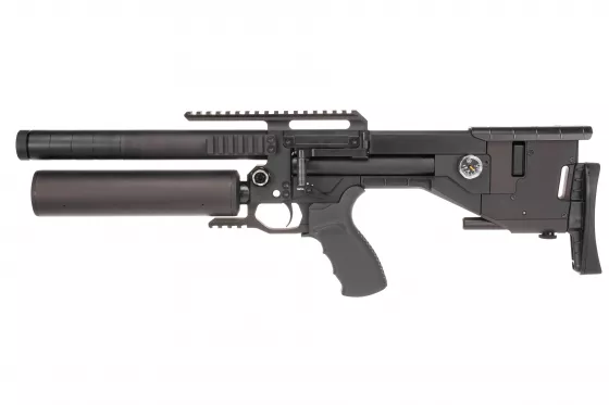 Dieses originelle PCP-Luftgewehr des türkischen Herstellers Kral Arms hat ein einzigartiges Spannsystem, das von den Pump-Action-Schrotflinten inspiriert wurde. Der AR-15-Schaft mit verstellbarem Wangenaufsatz verleiht ihm ein taktisches Aussehen.