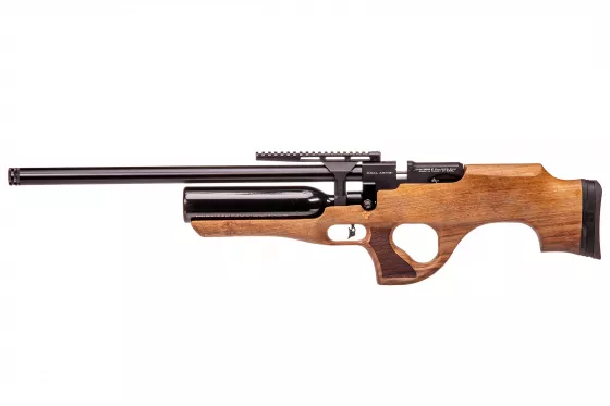 Mit diesem PCP-Luftgewehr können Sie im halbautomatischen Modus schießen. Es ist auch mit einem schönen Holzschaft und ergonomisch geformten Pistolengriff ausgestattet. Die Luftflasche hat ein Fassungsvermögen von 280 cc und der maximale Fülldruck beträgt 250 Bar.