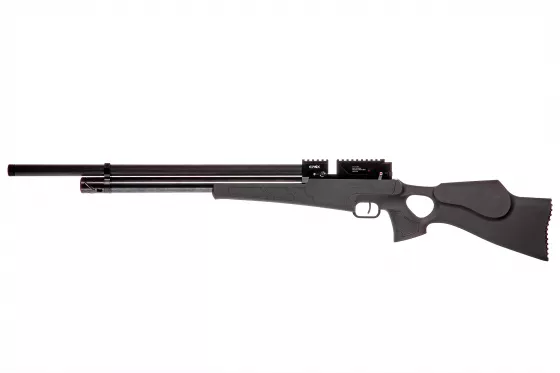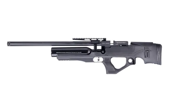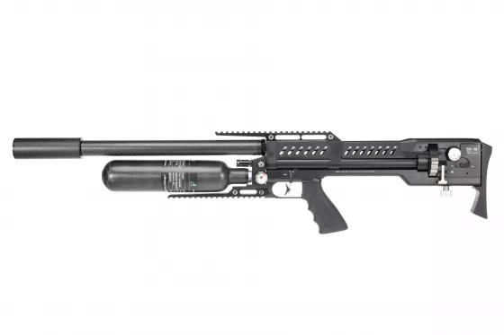 Semi-Auto Luftgewehr mit einem revolutionären Ventil, das eine hervorragende Leistung bei minimalem Luftverbrauch bietet. Darüber hinaus verfügt es über ein sehr kompaktes und dennoch robustes Design, einen punktgenauen Mantel-Lauf mit integriertem Schallmoderator, einen AR-15-Griff und eine 20 MOA geneigte Picatinny-Schiene.