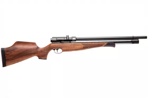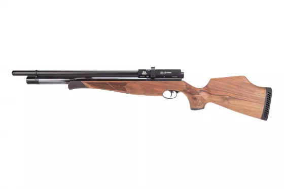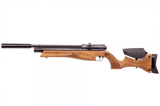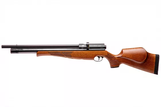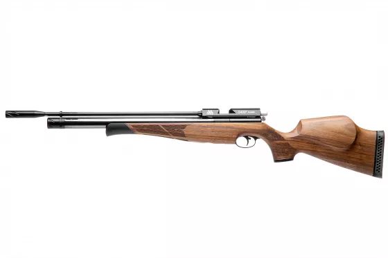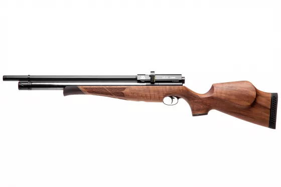 Einschüssiges PCP-Gewehr mit Lothar-Walther-Lauf, der sich durch gute Präzision auszeichnet. Hochwertige Verarbeitung, gekrönt mit einem schönen Holzschaft. Besonders geeignet für sportliche Zwecke.