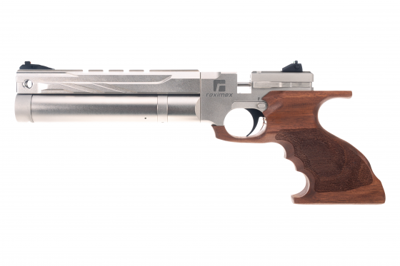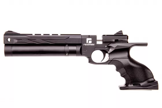 PCP-Pistole für das Präzisionsschießen vom türkischen Hersteller Reximex. Sie hat einen 200 mm langen Präzisionslauf und auch einen Druckregler.