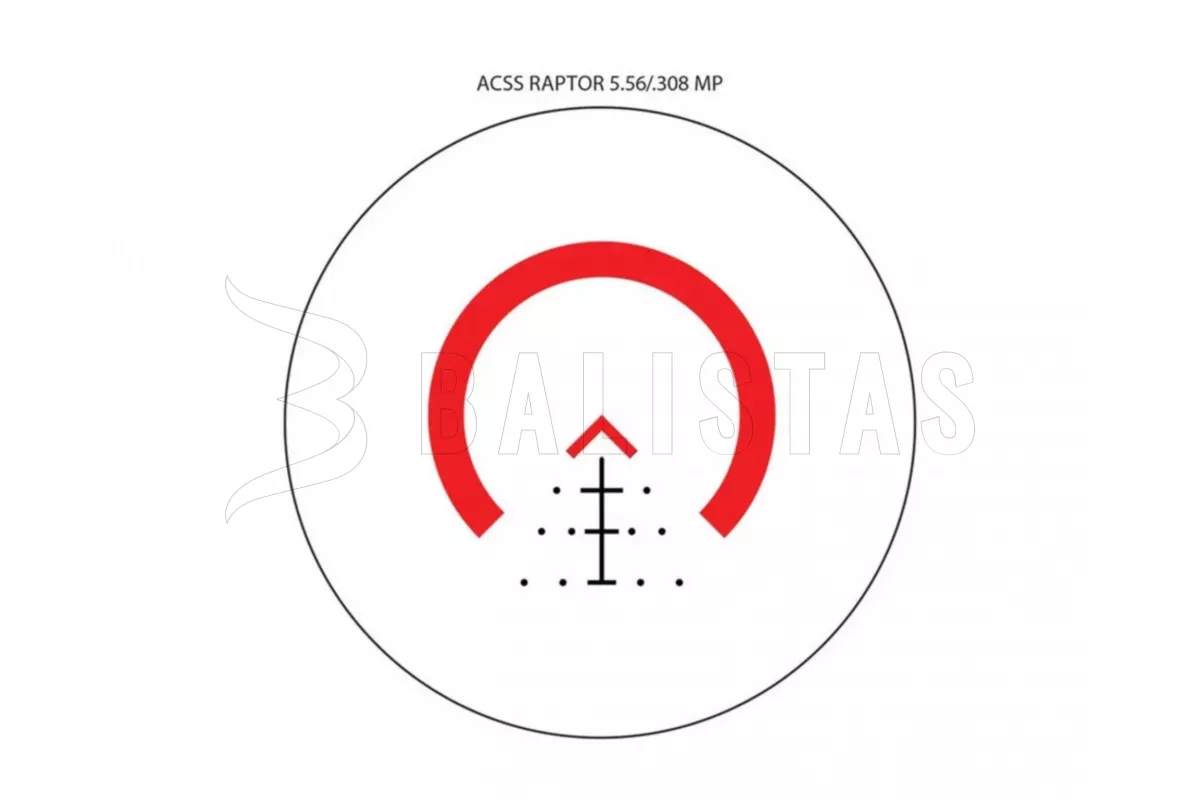 Das patentierte ACSS Raptor 5.56/.308 Fadenkreuz mit 16 Beleuchtungsstufen (13 Tag- und 3 Nachtmodi), die in 0,25 MOA-Schritten über einen Bereich von 80 MOA in jeder Ebene korrigiert werden, ermöglicht eine präzise Zielerfassung und -ansteuerung.