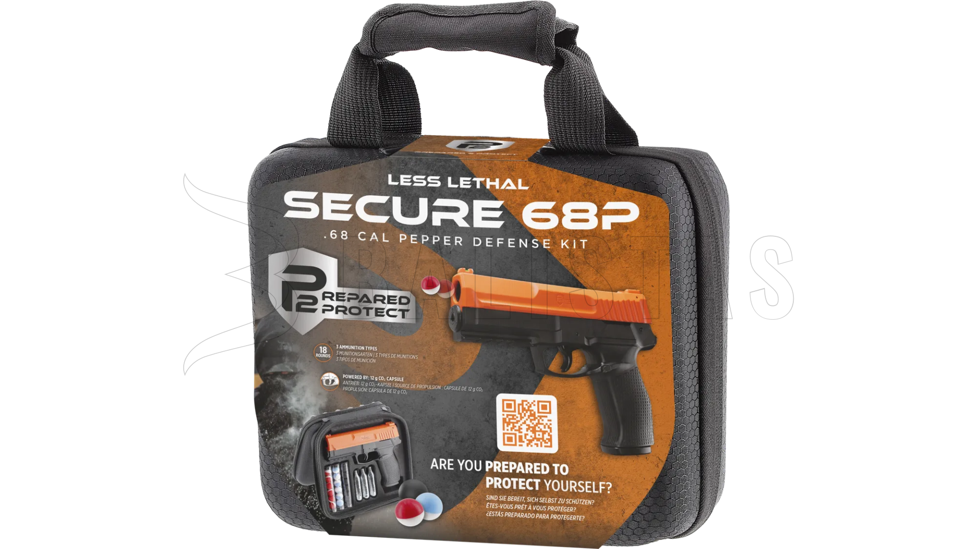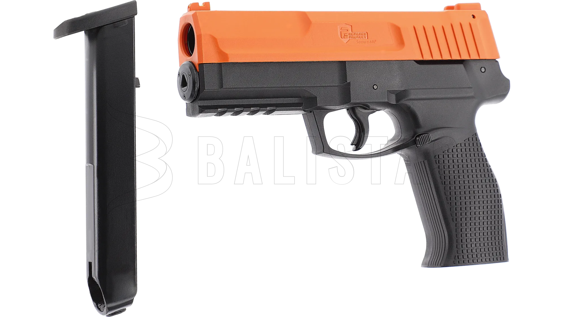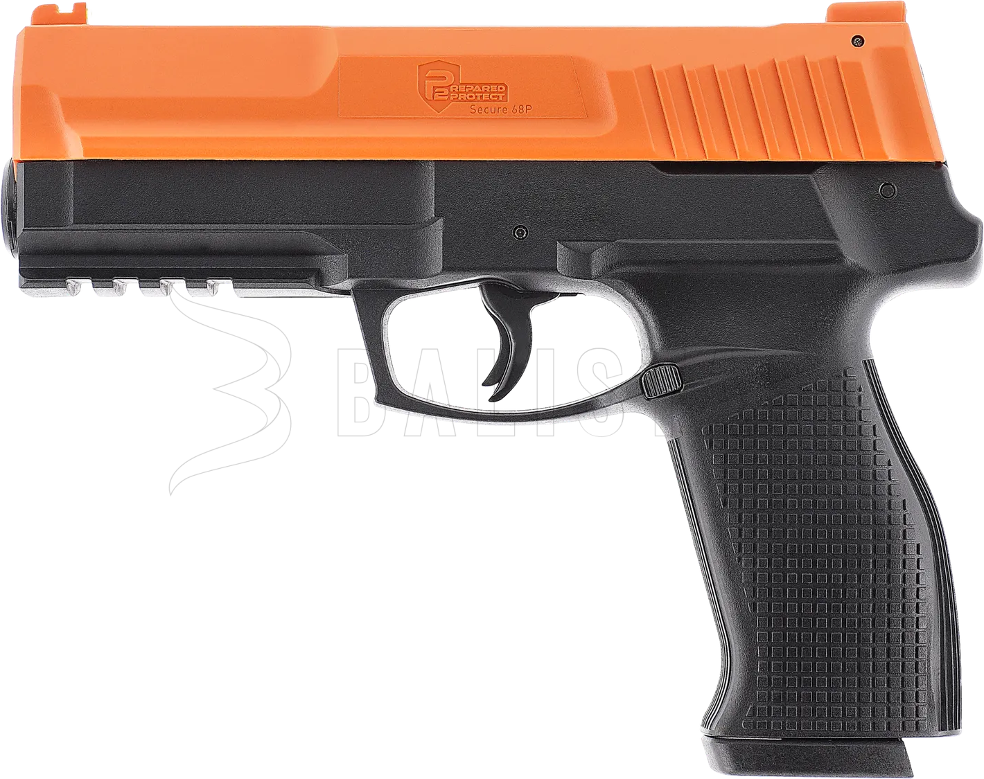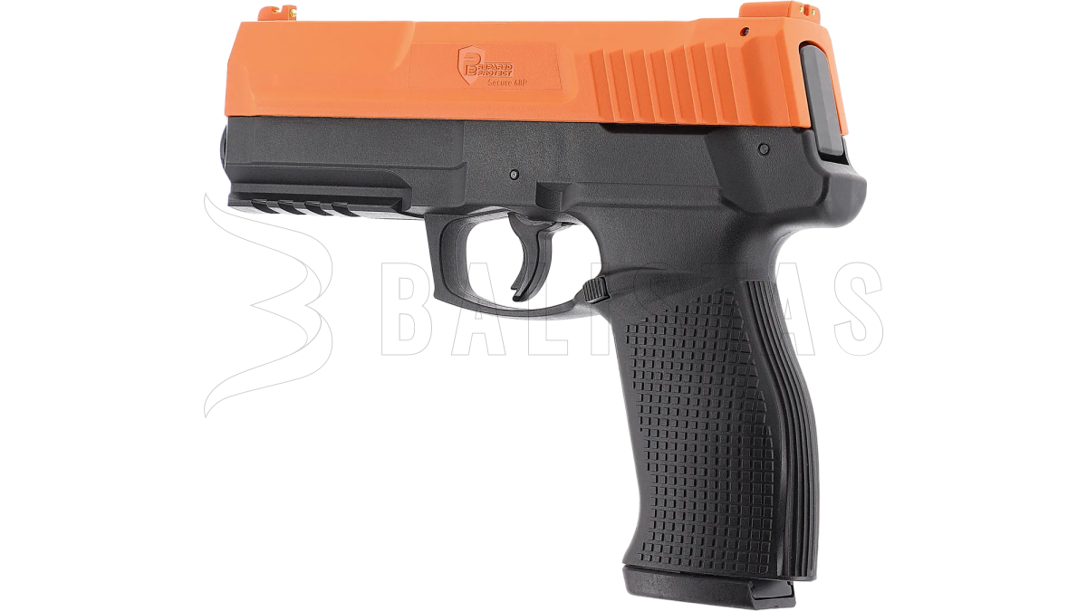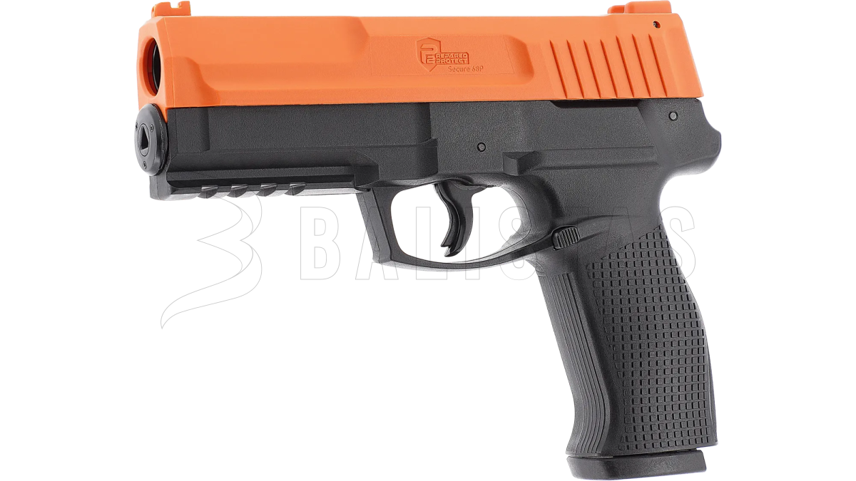 Umarex P2P Secure 68P ist eine Pistole für Gummi-, Pfeffer- und Markierungsprojektile, die mit CO₂-Kapseln betrieben wird und für Selbstverteidigung, Training und Freizeitschießen entwickelt wurde. Ein großer Vorteil im Vergleich zu früheren und konkurrierenden Modellen ist das verbesserte Schnellaktivierungssystem, das herausnehmbare Magazin und das größere Kaliber .68cal.