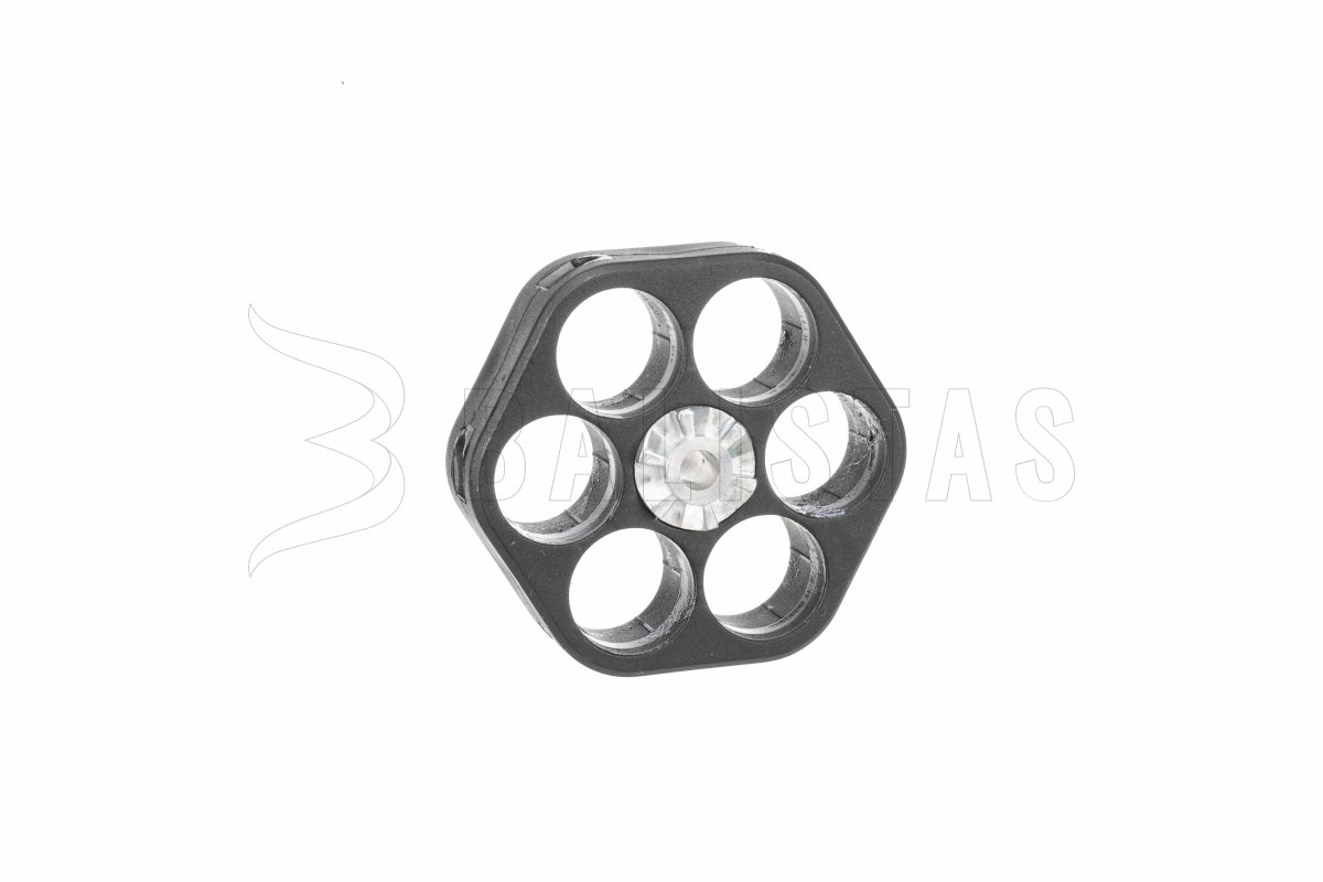 Das 6-Schuss-Drehmagazin ist jedoch mit jeder atypisch geformten Patrone kompatibel, die den Abmessungen des Patronenlagers (12,7x18,5mm) entspricht. Das Magazin kann mit Hilfe der doppelseitigen, aufgerauten Sicherung leicht entnommen werden. Eine manuelle Sicherung im metallenen Abzugsbügel verhindert eine unbeabsichtigte Entladung.