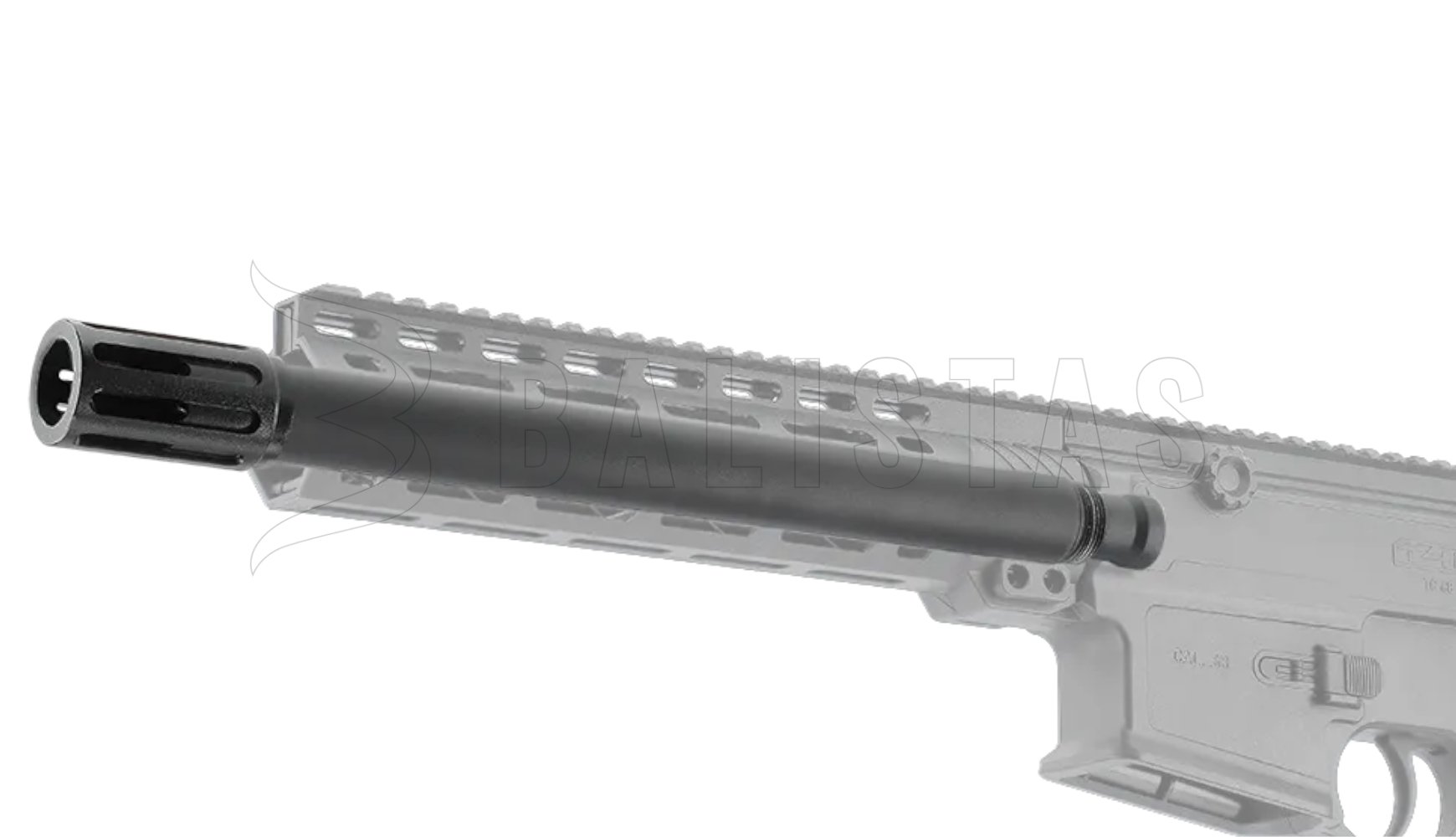 Der 300-mm-Lauf des Gewehrs ist nur auf einem speziellen Autococker-Gewinde montiert , so dass er zum Reinigen leicht entfernt oder durch einen Tuning-Lauf ersetzt werden kann. Am Ende des M22x1,5-Gewindes befindet sich eine Metallimitation der Mündungsbremse, die Sie z.B. durch eine Umarex T4E X-Tracer .68 light ersetzen können.