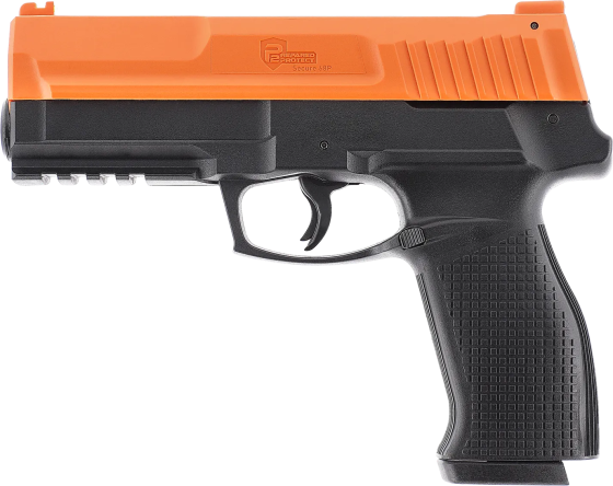 CO₂-Pistole für Gummi-, Pfeffer- und Markierungspro­jektile mit fortschrittlichem Schnellaktivi­erungssystem und herausnehmbarem 6-Schuss-Magazin im Griff, geeignet für Training und Freizeitschießen. Bietet eine Picatinny-Montageschiene für Laser oder Taschenlampe, Fiberoptik-Visierung und ein Set mit CO₂-Kapseln und 3 Arten von Kugeln.