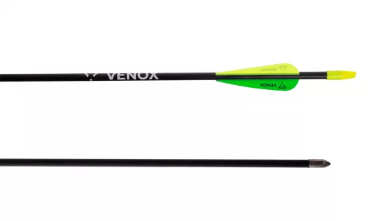 Klassischer Kinderbogen der Marke Venox bestehend aus Glasfaserarmen und einem Polymerkern. Das Zuggewicht beträgt 10 Pfund, sodass auch ein echter Anfänger die Sehne spannen kann. Mit diesem Bogen können sowohl rechtshändige als auch linkshändige Kinder schießen.