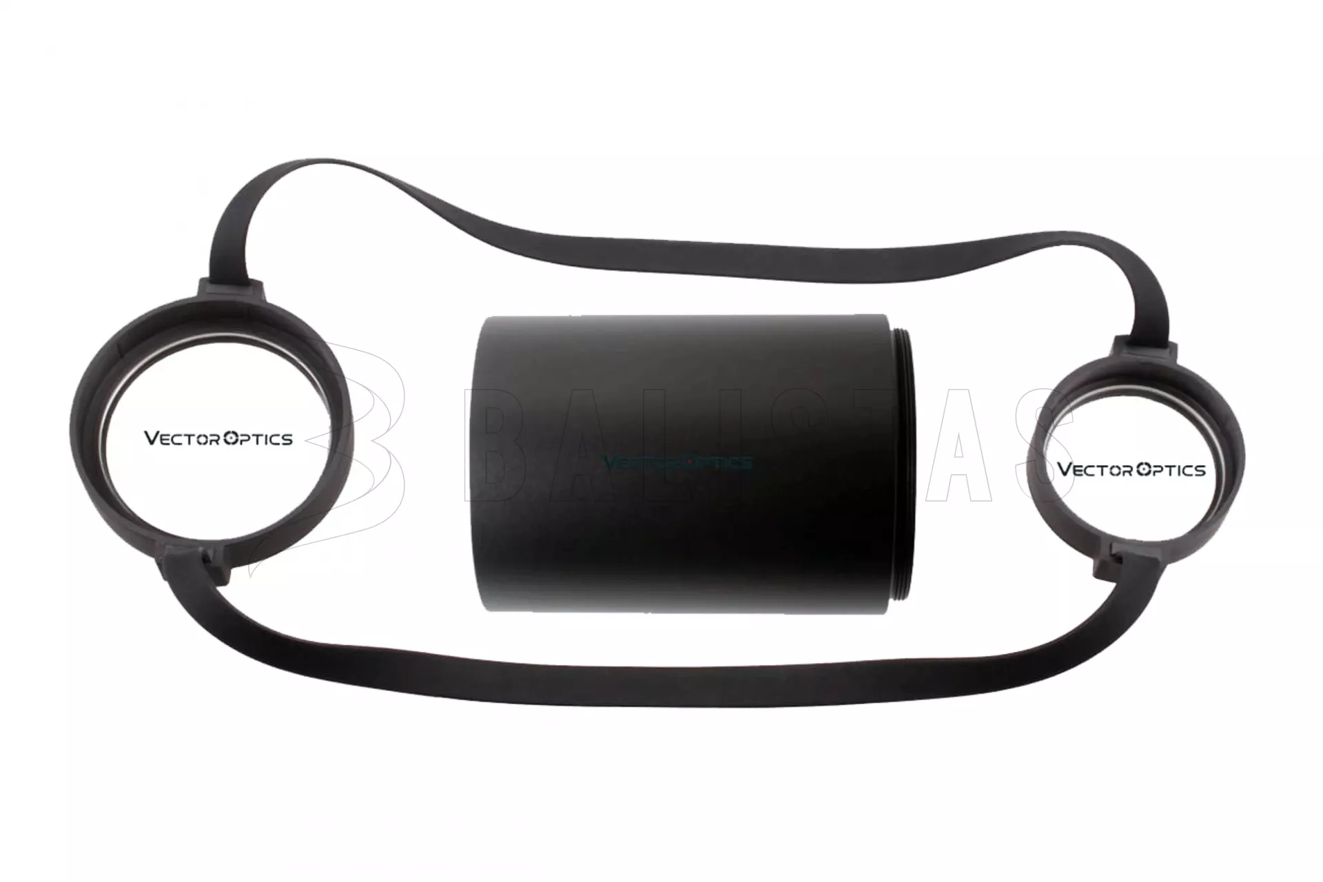 Das Zielfernrohr wird komplett mit einer zweiteiligen Picatinny-Schienenmontage, einem Ersatzrevolver und einer Sonnenblende geliefert.