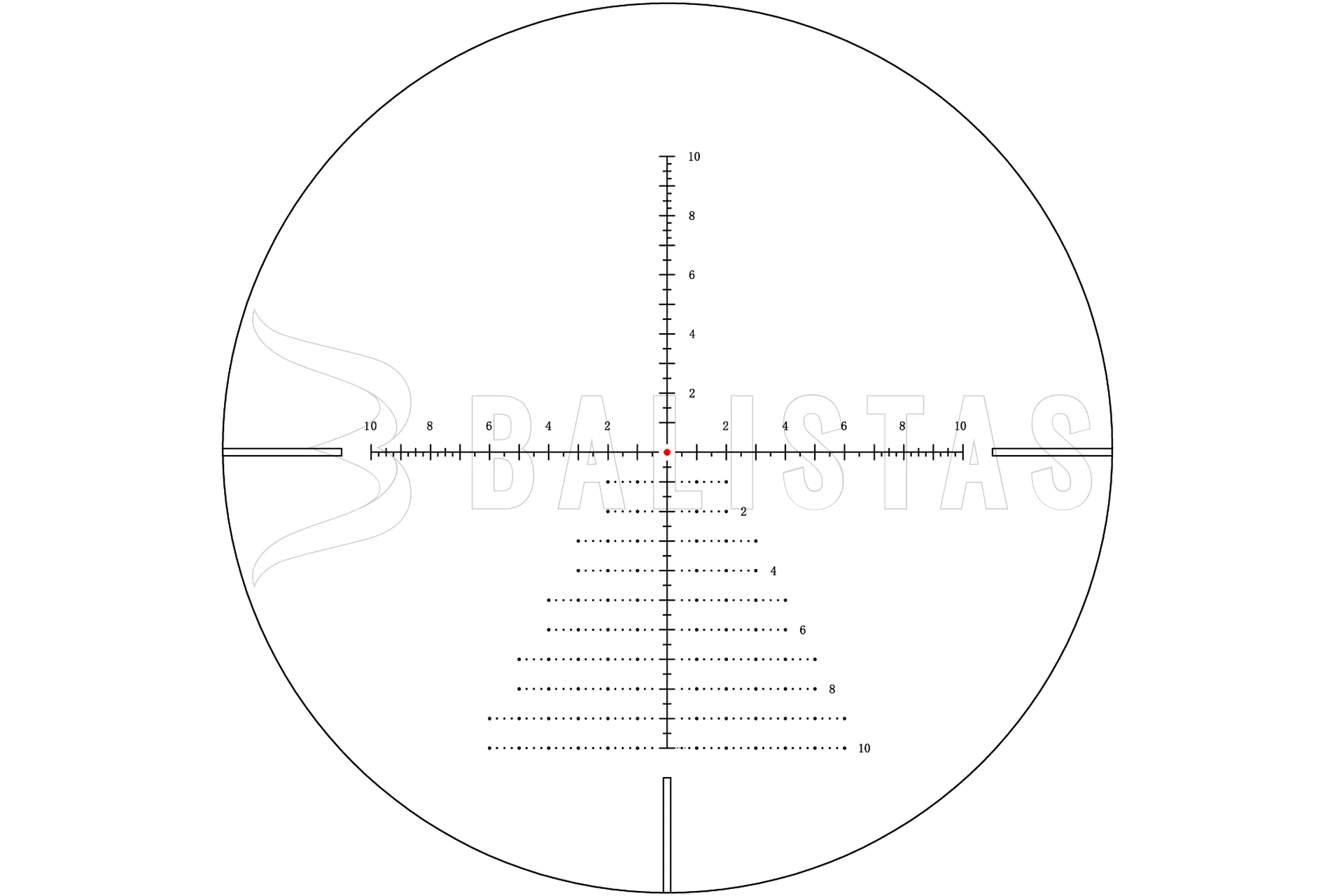Das MPR-V10 verfügt über ein auf das Glas geätztes Fadenkreuz in der zweiten Brennebene mit einem beleuchteten zentralen Punkt in 6 verschiedenen Intensitäten, auf den Sie sich beim Zielen verlassen können. Es besteht auch die Möglichkeit, Sehschwächen in Form einer Dioptrienkorrektur (+2 bis -2) zu berücksichtigen.