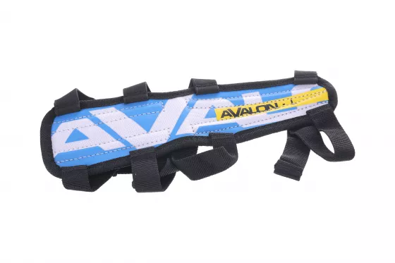 Dieser praktische Armschutz von Avalon hat eine Länge von 17 cm und zwei elastische Clipschnallen. Er besteht aus einer Kombination aus Nylon und Leder und ist in blau gehalten.